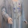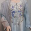 Delicate hand  embellishmentsof sequins and stones shimmer subtly across the canvas, adding a touch of glamour without overpowering the look. The neckline is adorned with loop buttons, lending a refined, artisanal finish.