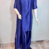 A graceful and simple dress crafted from luxurious silk fabric, featuring delicate pleats and loops adorned with pearls. It is paired with a silk organza dupatta finished with silk edging on the pallu and comes with a classic farshi shalwar, creating a timeless and elegant look.